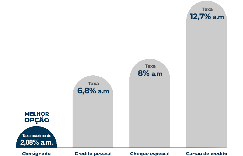 • Parcelas mensais descontadas diretamente contracheque do servidor, assim você não precisa ficar preocupado com o pagamento das parcelas.