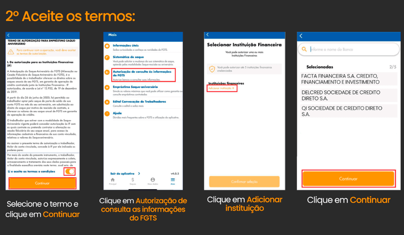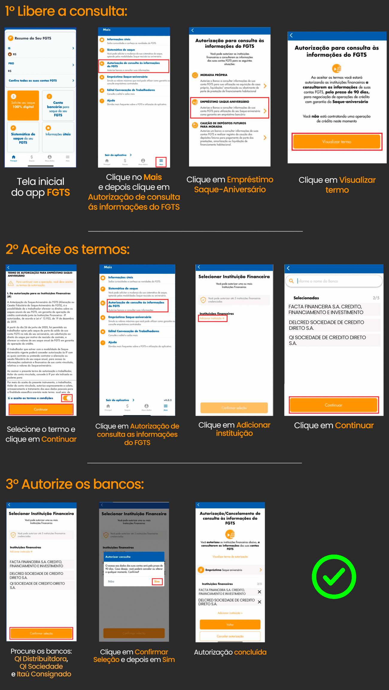 • Limite para o número de antecipações: até 5 saques-aniversário em um período de 12 meses. Após esse prazo, o trabalhador poderá realizar até 3 novas antecipações de saques-aniversário, por contrato.